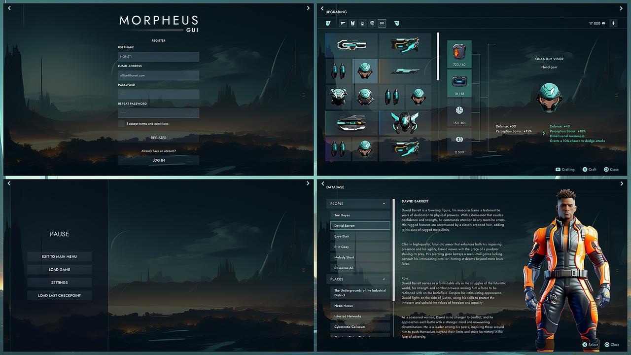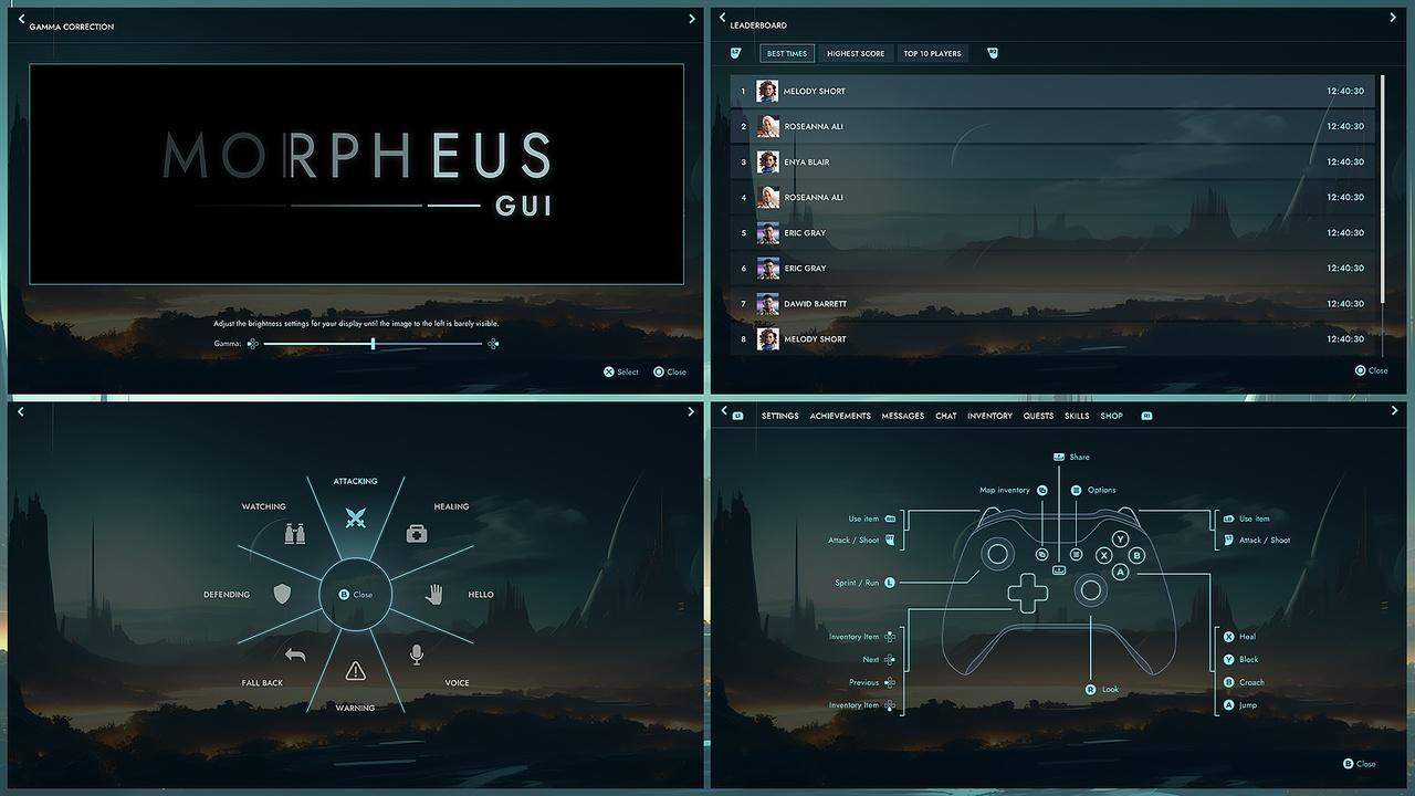Morpheus GUI (graphical user interface) features a sci-fi modern, minimalist design and includes a wide range of essential UI elements and popular views. Its high level of customizability makes it an invaluable tool for creating sleek and efficient user interfaces.