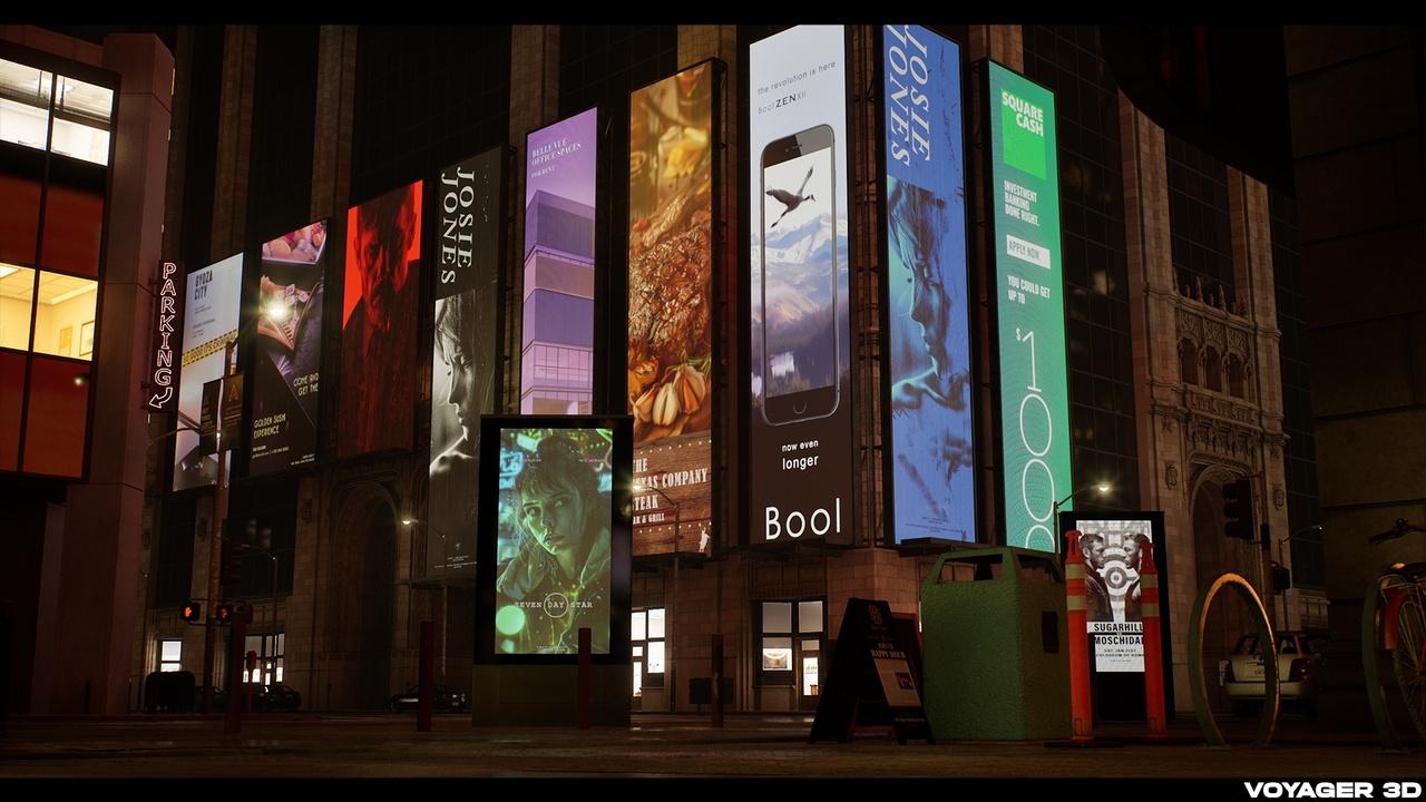 The City scene in the background is the free environment provided by Epic Games called 'City Sample' on the marketplace and is not included in the download of this Billboards pack.