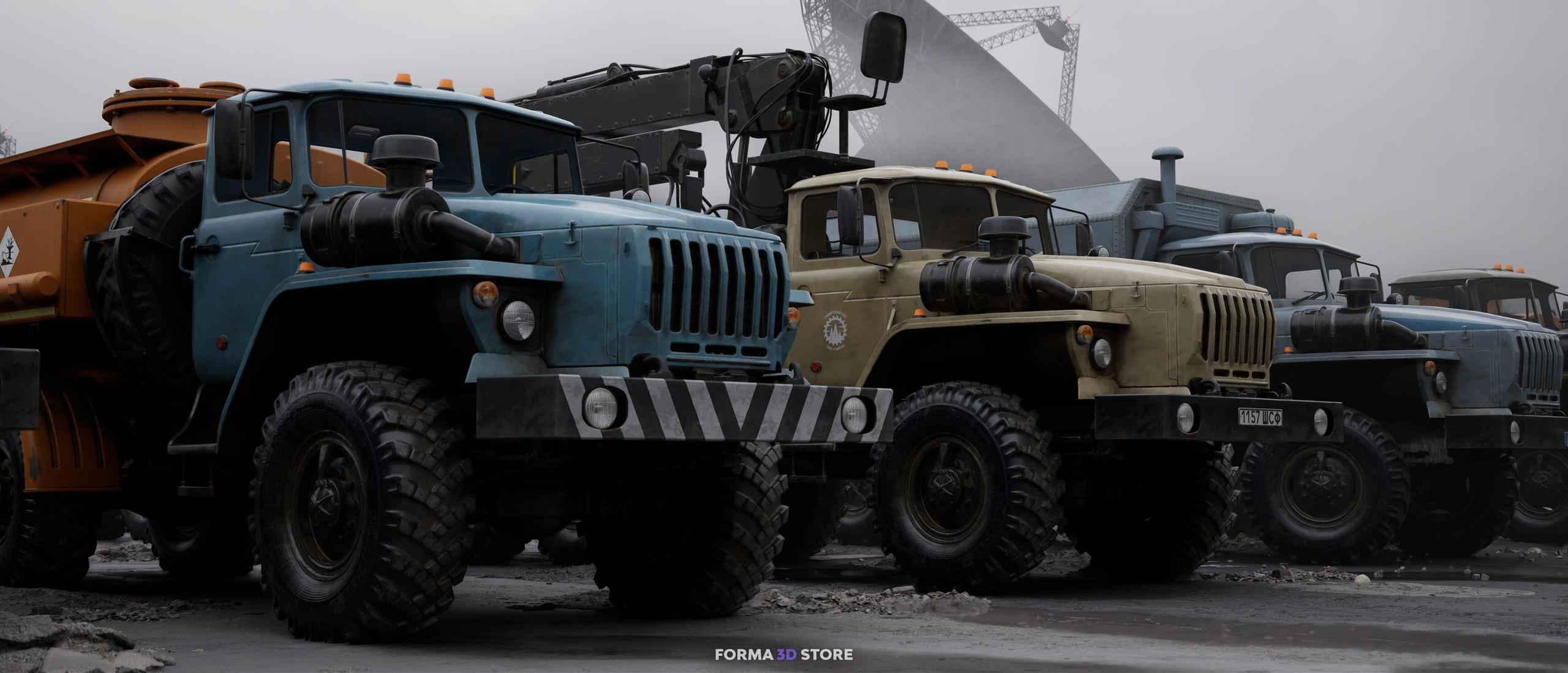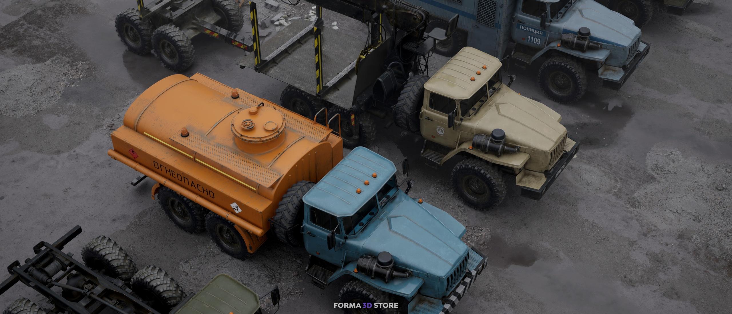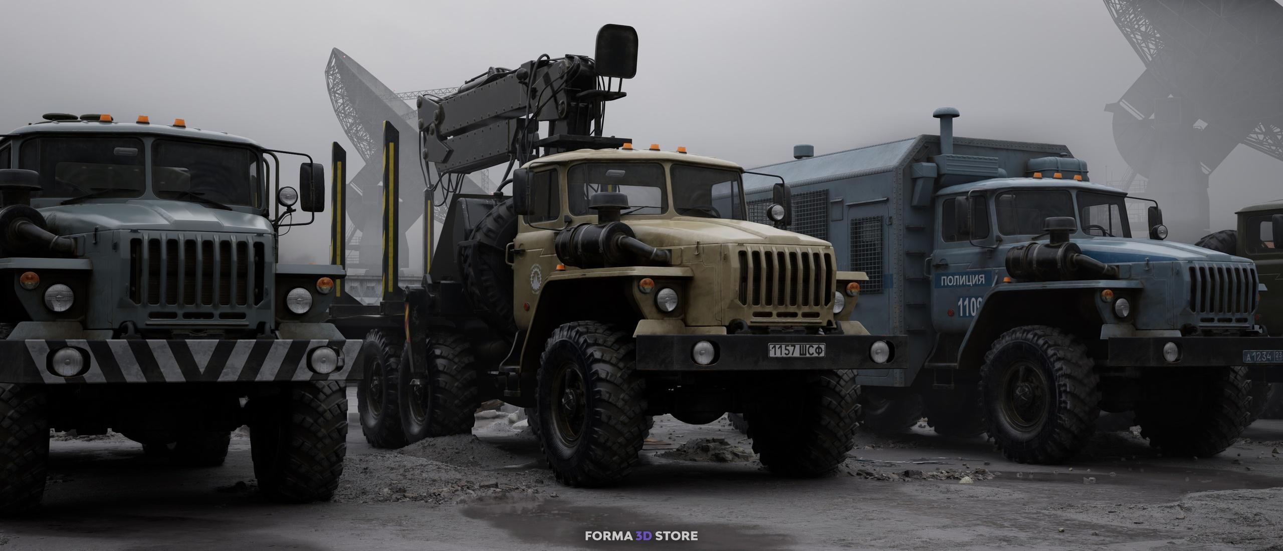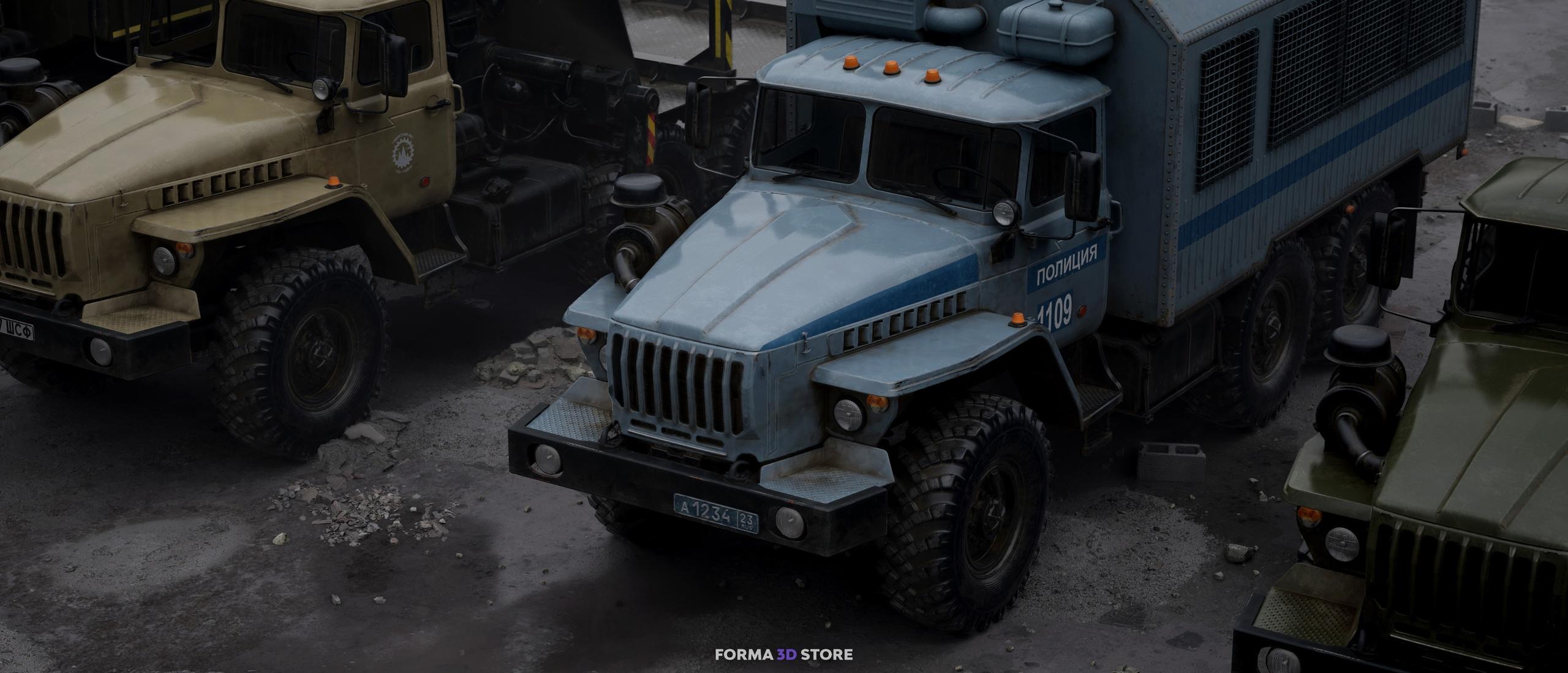 Ural Truck is a highly detailed 3D asset of a heavy-duty 6×6. Every element is carefully crafted, from the cab and chassis to the suspension and exterior accessories. Delivered in four configurations and optimized for VFX and game workflows, Ural Truck serves as a robust foundation for games, films, and simulations, bringing grounded realism and immersive scale to your projects.