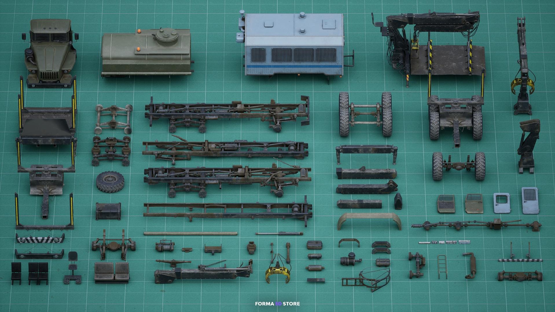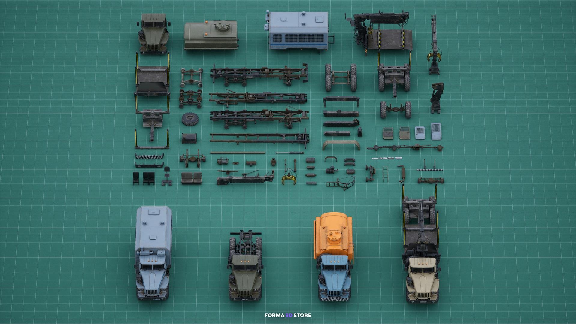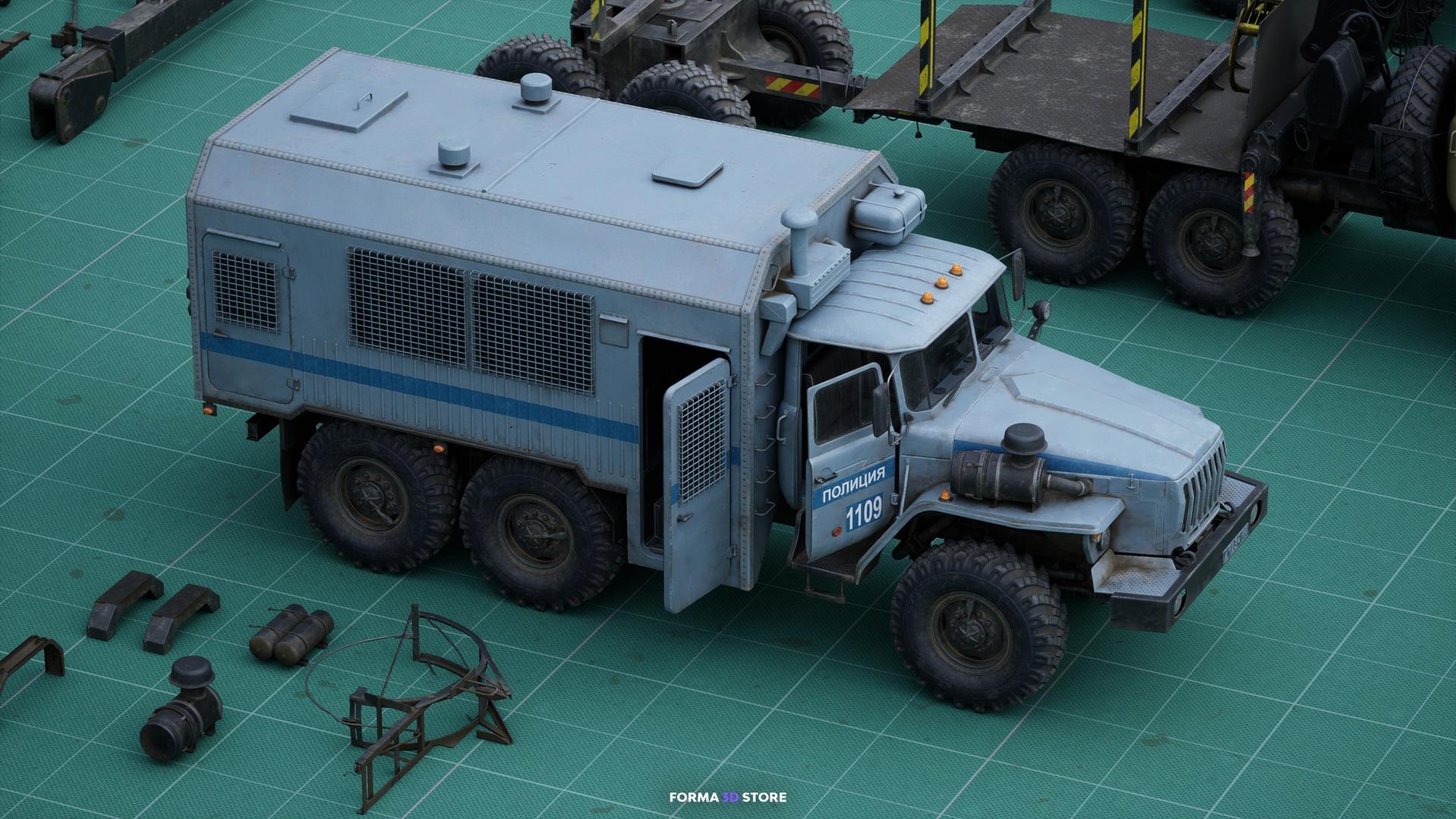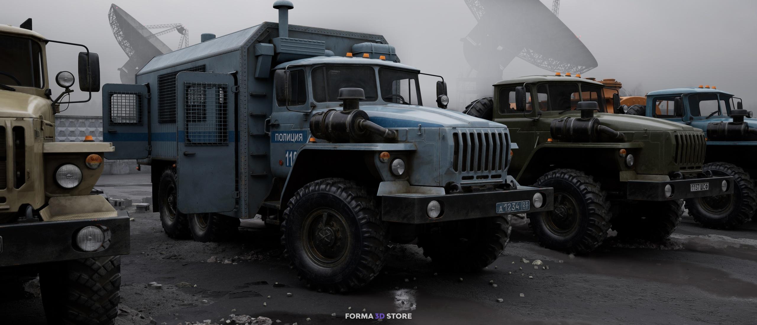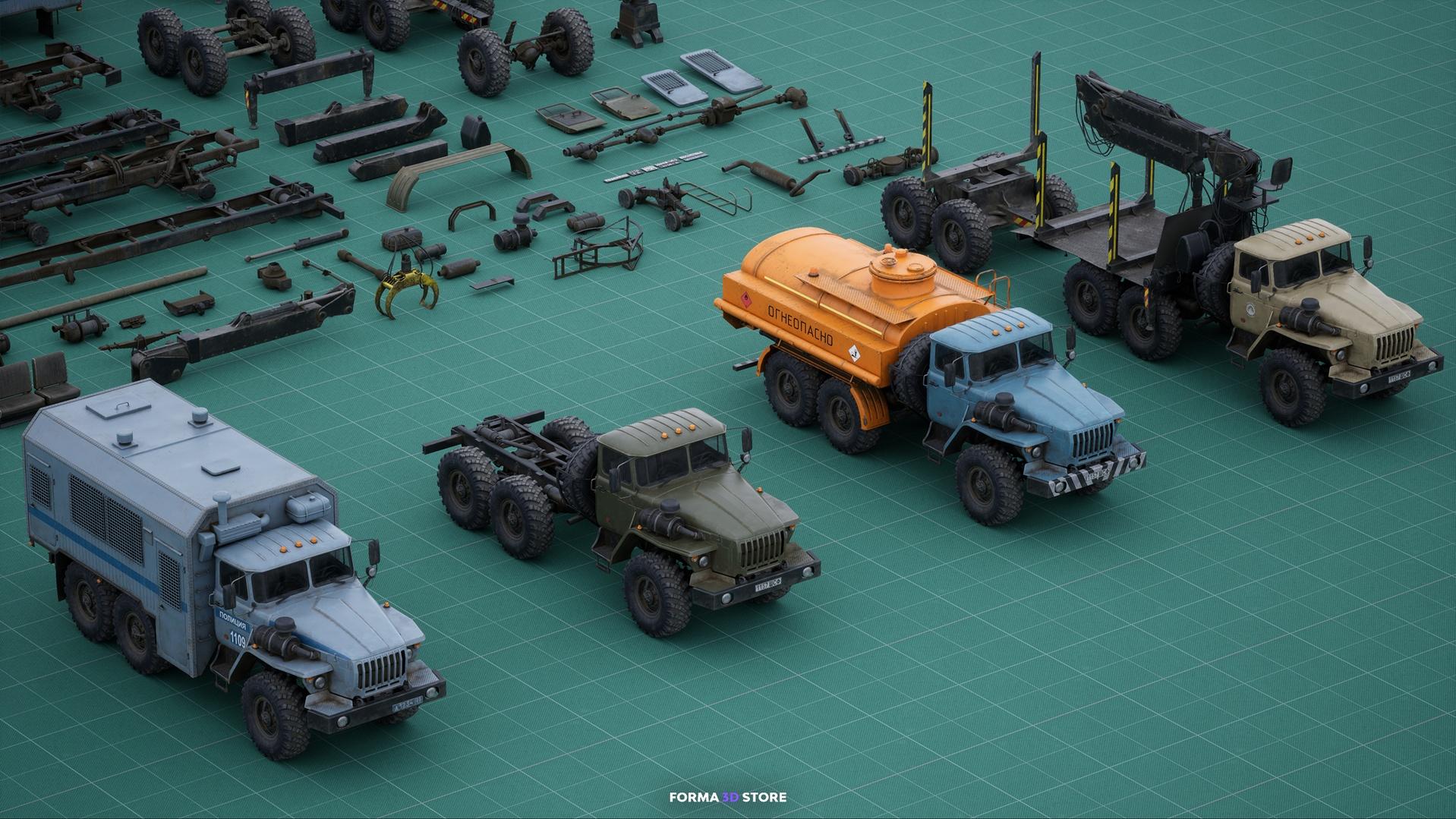 Ural Truck is a highly detailed 3D asset of a heavy-duty 6×6. Every element is carefully crafted, from the cab and chassis to the suspension and exterior accessories. Delivered in four configurations and optimized for VFX and game workflows, Ural Truck serves as a robust foundation for games, films, and simulations, bringing grounded realism and immersive scale to your projects.