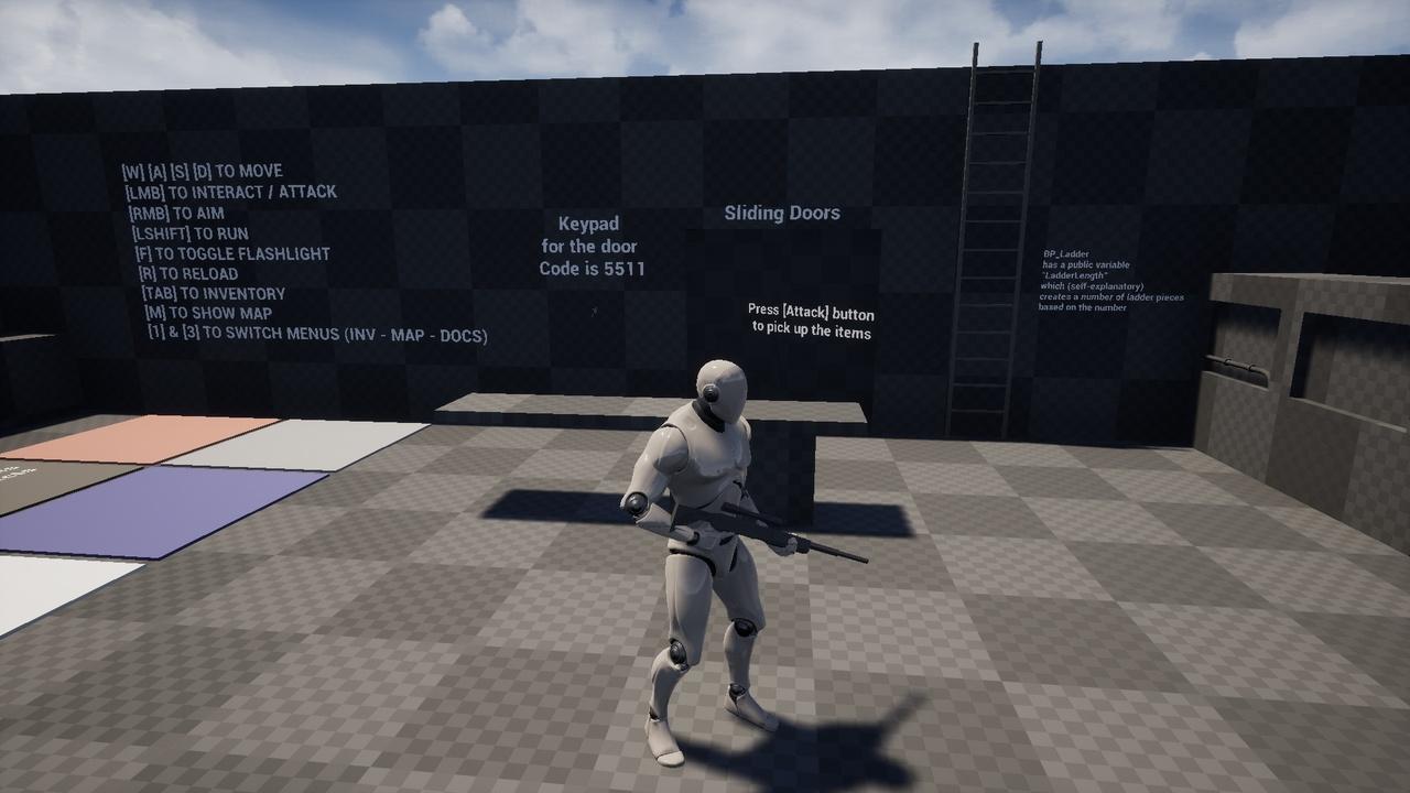 This template gives you a gameplay experience with melee weapons, different firearms, supplies, combining items, documents, maps, a complex inventory and much more.