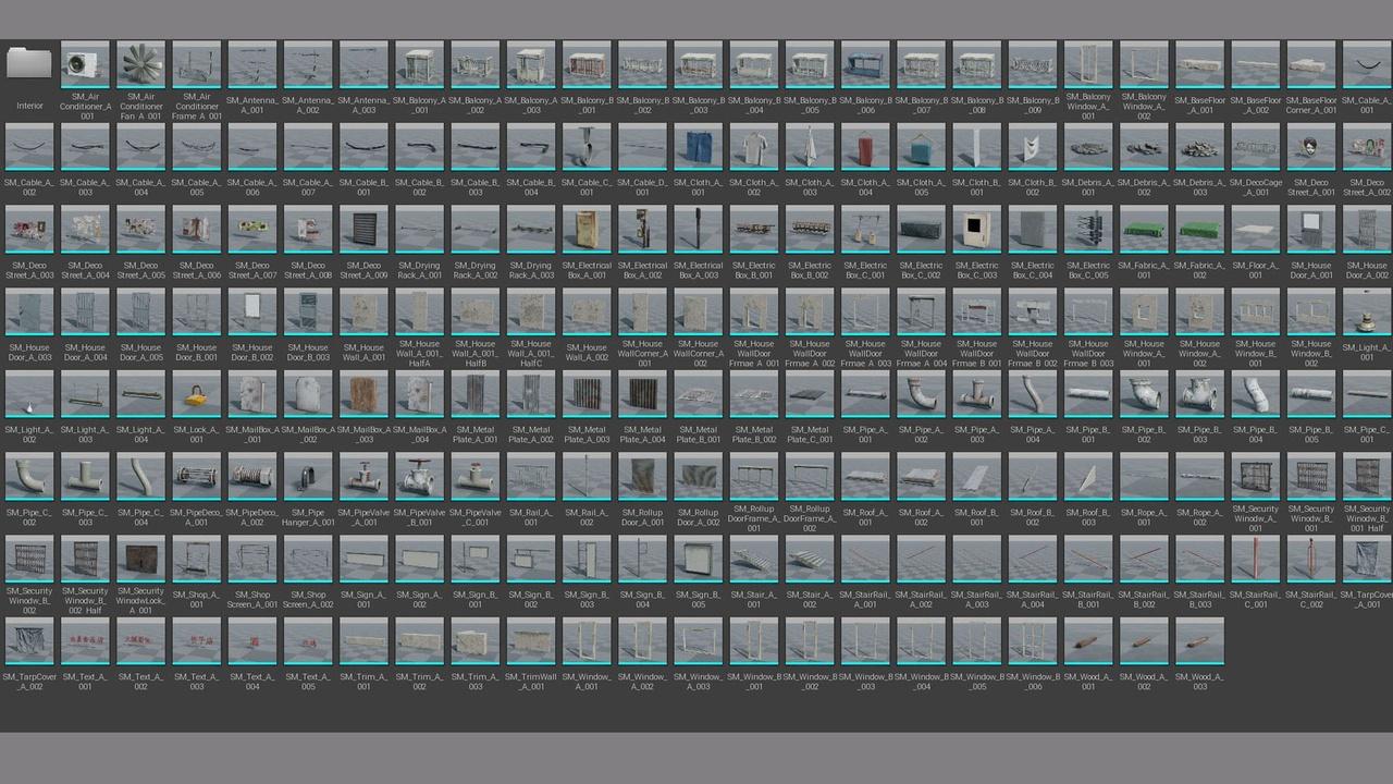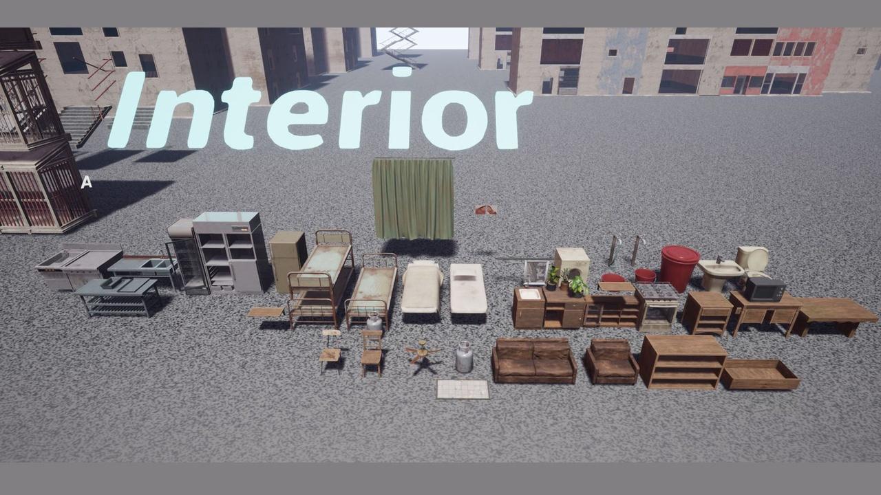 Pack includes not only houses but also props for decorating alleys, decal textures for decorating housing walls, and simple interior props.