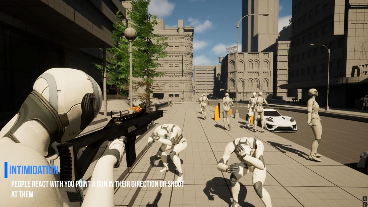 NPCs react realistically when a weapon is aimed at them or when shots are fired. They will either lie down or run away, adding immersion to your game.