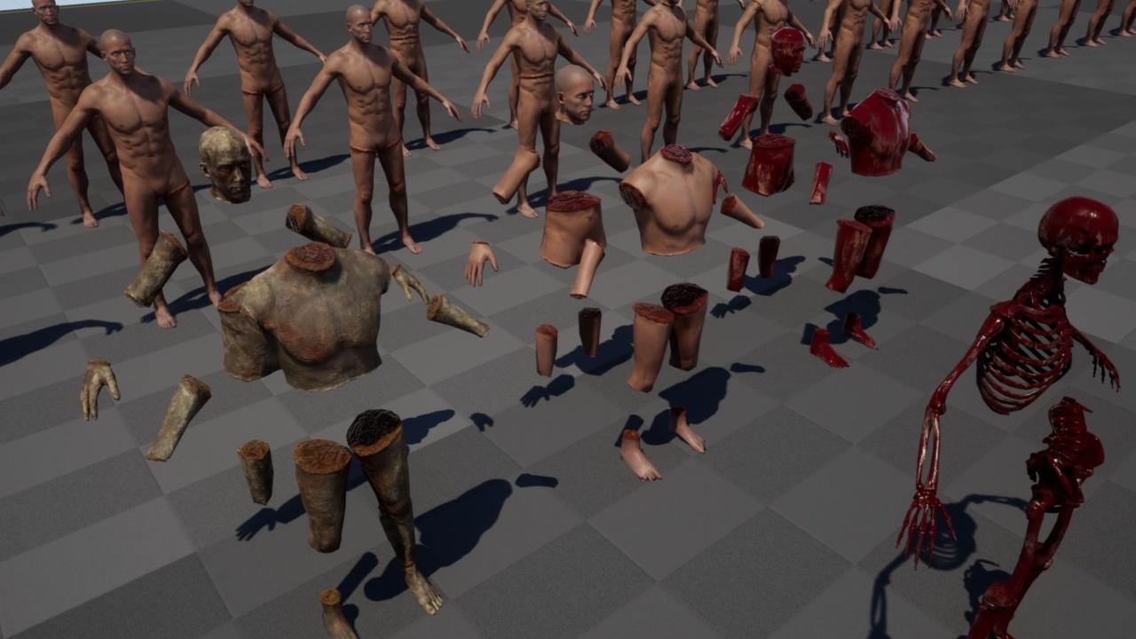 These assets are very detailed and well-made. The creator accurately modeled the character's skeleton, musculature, and internal organs before creating these sliced meshes. The end result is anatomically accurate gore and dismemberment without a significant loss in performance. The morph target animations add an extra layer of realism as well. The creator is very responsive and helpful over email.