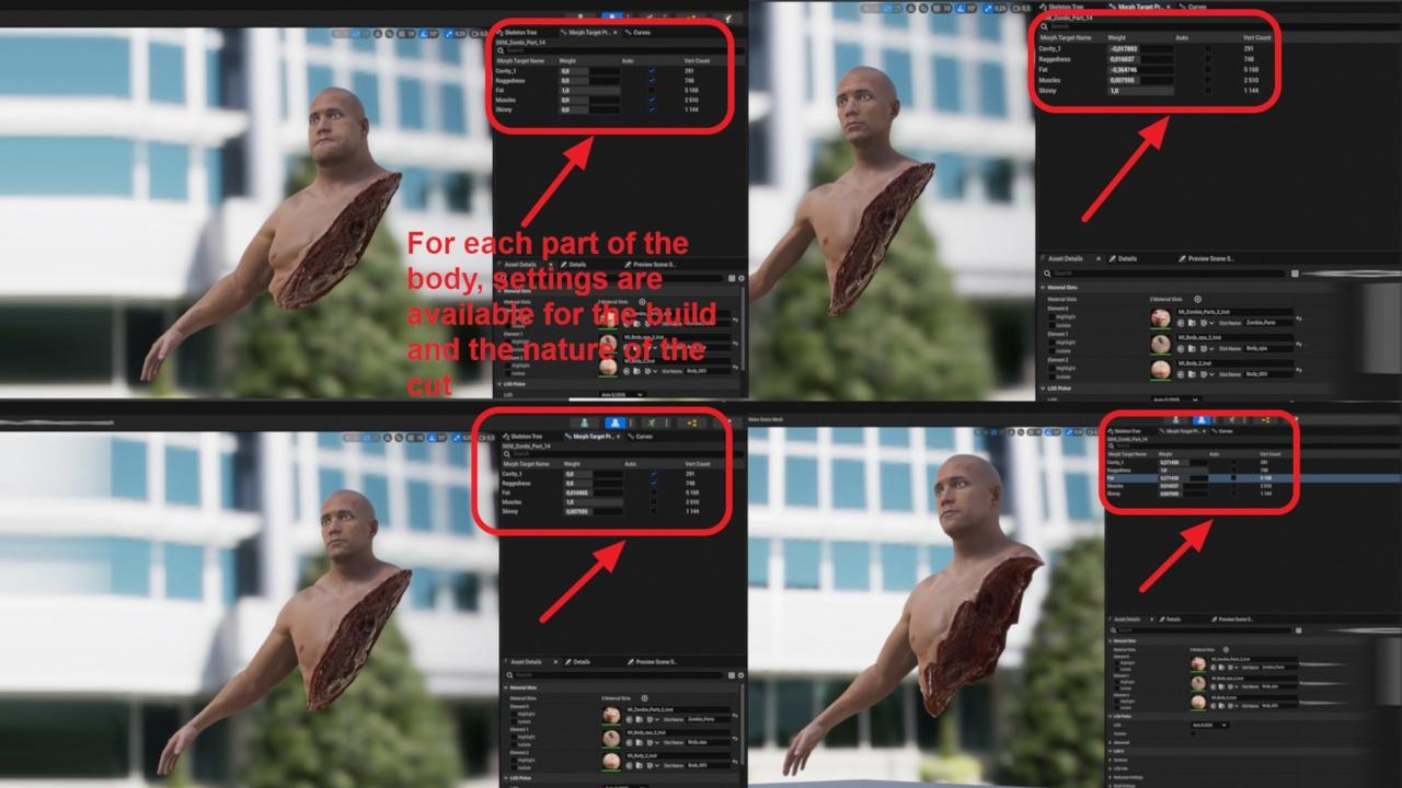 with beautiful pealistic cuts based on visible anatomy, and complete their modification with the help of an international number of morpho-targets that allow early pains to be ugly or smooth large, deep or superficial, and open fractures.