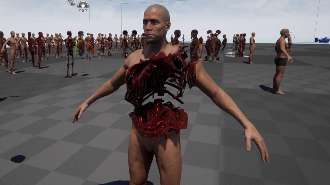 2) To create good characters like zambi mutants, due to various combinations of different body parts in various builds from thin and pumped up to fat, combinations of different material parameters can be easily achieved by a sequence of numbers of zombies that are different from each other.