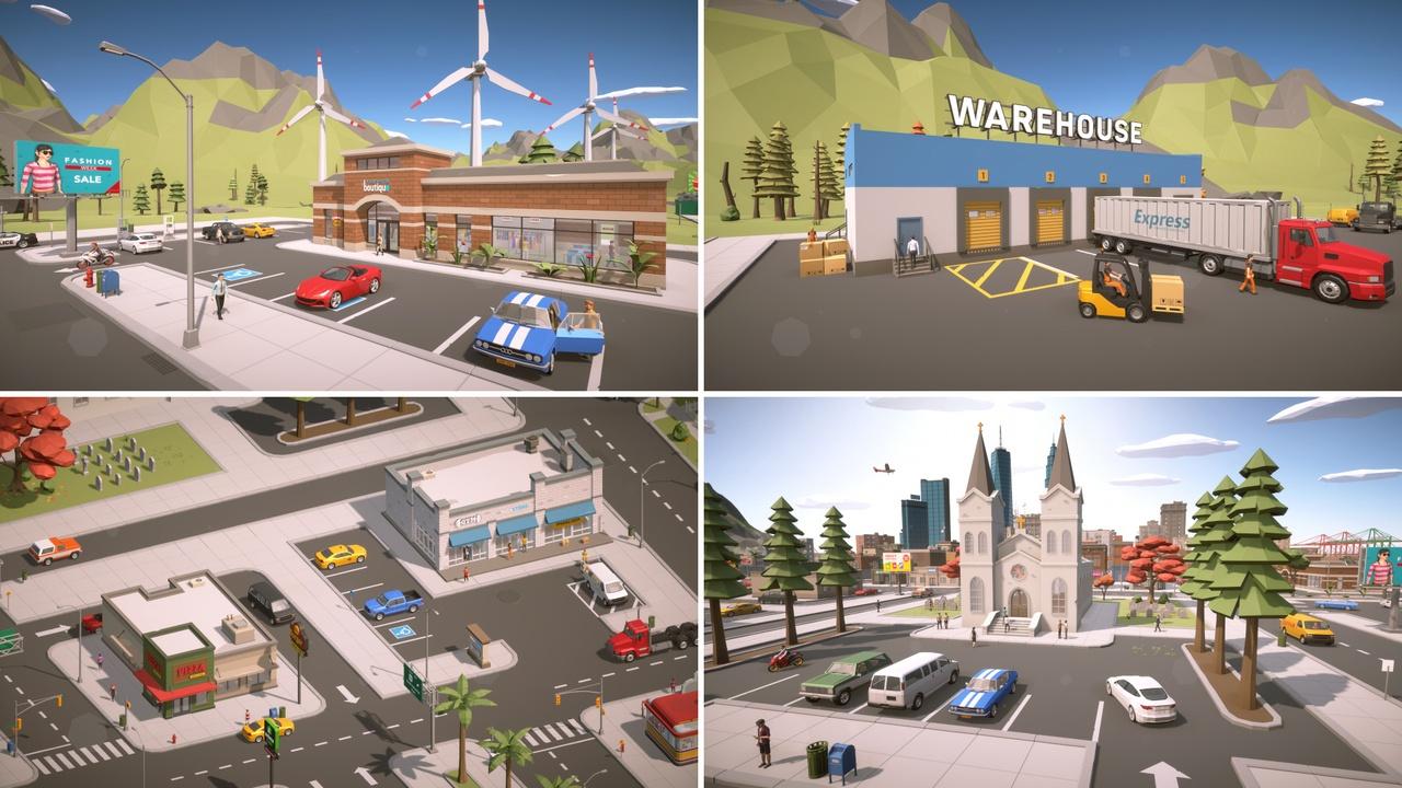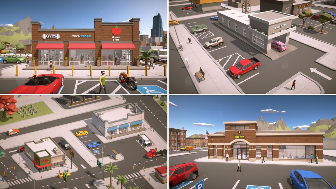 Apartments, Beach Shop, Beach Lifeguard Tower, Car Park Building, Car Wash, Church, Cinema, City Hall/Capital Bldg, EV Charging Station and Convenience Store, Firehouse, Gazebo, Generic, Warehouse, Harbour Crane(Big, Small), Small Shops, Big Shops, Commercials, High Rises, Skyscrapers, Motel, Motel Entrance, Diner, Workshop, Shopping Mall, Showroom, Airport Terminal, Hanger, Cargo, Jetway Bridge, Tower, Gas Station, Mobile Homes, Industrial buildings, Suburban Houses, Garage, Gazebo, Farm Houses, Barns , Green Houses , Sheds , Stalls , Flour Mill, Outhouse, Shelters , etc