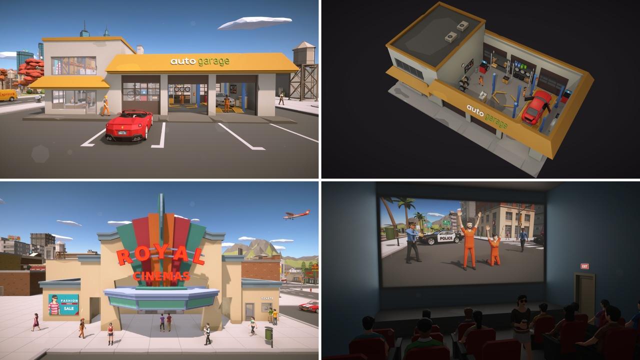 Including interiors for Auto Repair Shop, Butcher, Cloths, Electronics, Guns, Gym, Airport, Restaurant(Chairs, Tables, Booth seat, Kitchen, Coffee machine, Ice Cream machine, Soda machine, Menu boards, Self order Kiosk, Items, etc)