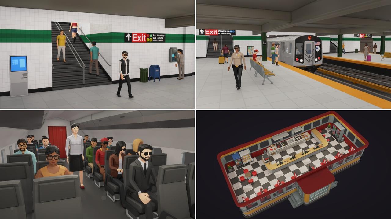 Trains, Subway Entrance x2, Modular Staion System(Walls, Stairs, Pillars, Platform, Roof, etc), Props(Ticket Barriers, Map, Ticket, Signs), Modular Train Track System(Underground(tunnel), Onground, Aboveground(Bridge))