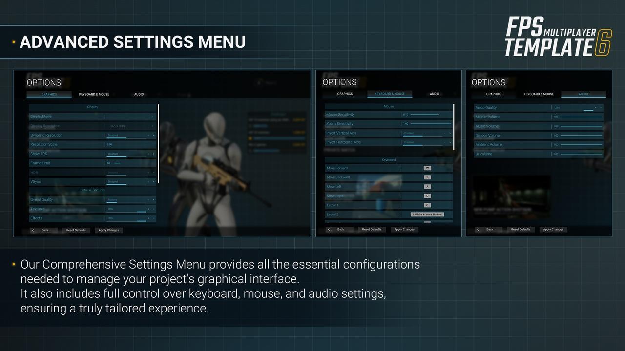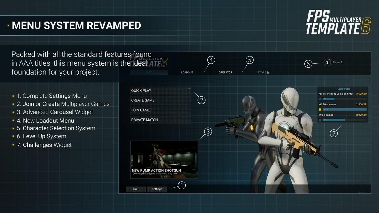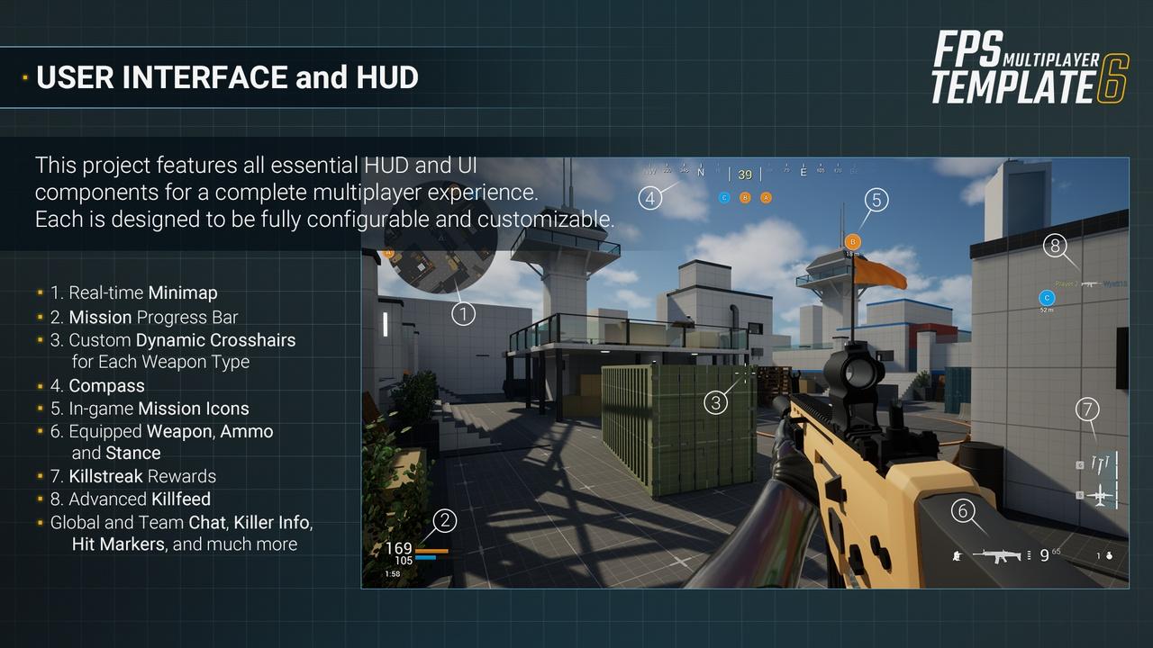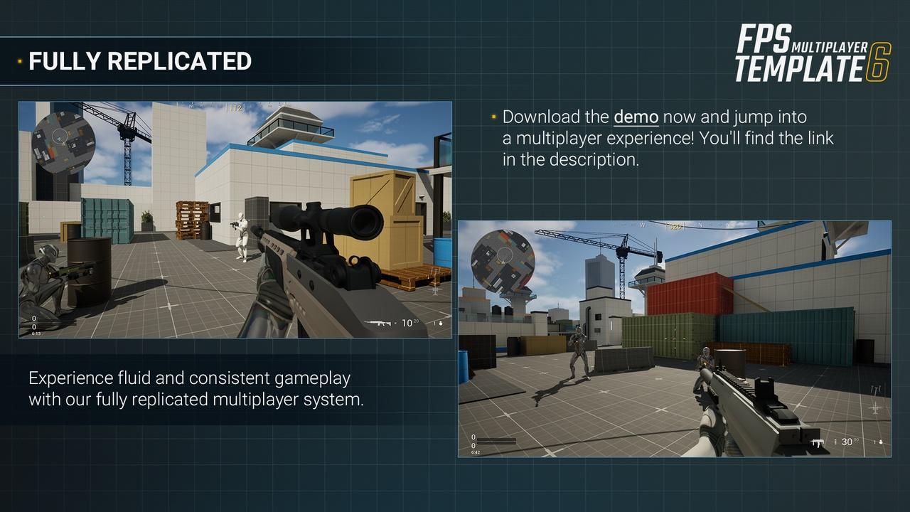 FPS Multiplayer Template is the perfect Unreal Engine project to save you months of work in your own game or to be used as a learning tool. All the functionalities that you need for a FPS or TPS multiplayer project are already built in, you only need to add your final touch.