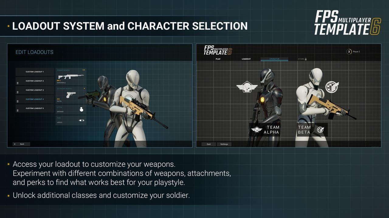 | FPS Multiplayer Template 6 | 5.0 - 5.4 | UPDATE 5.6 - 5.0 - V6 + MULTIPLAYER FPS CONTROLLER INTEGRATION DOC | Non-Available | |
