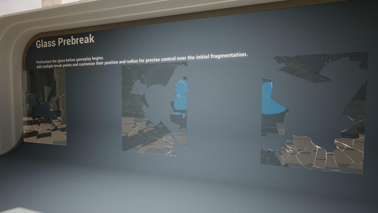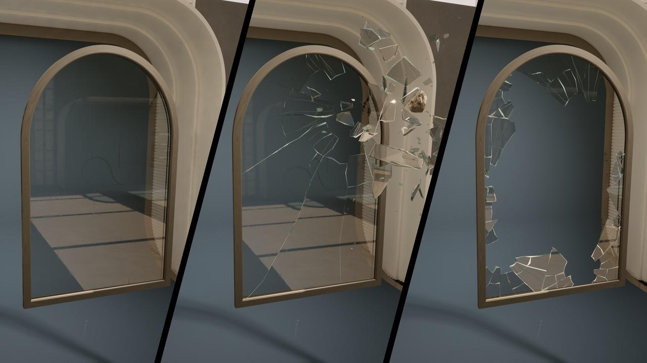 Procedural and recursive destruction – Glass can keep breaking dynamically until fragments become negligible.