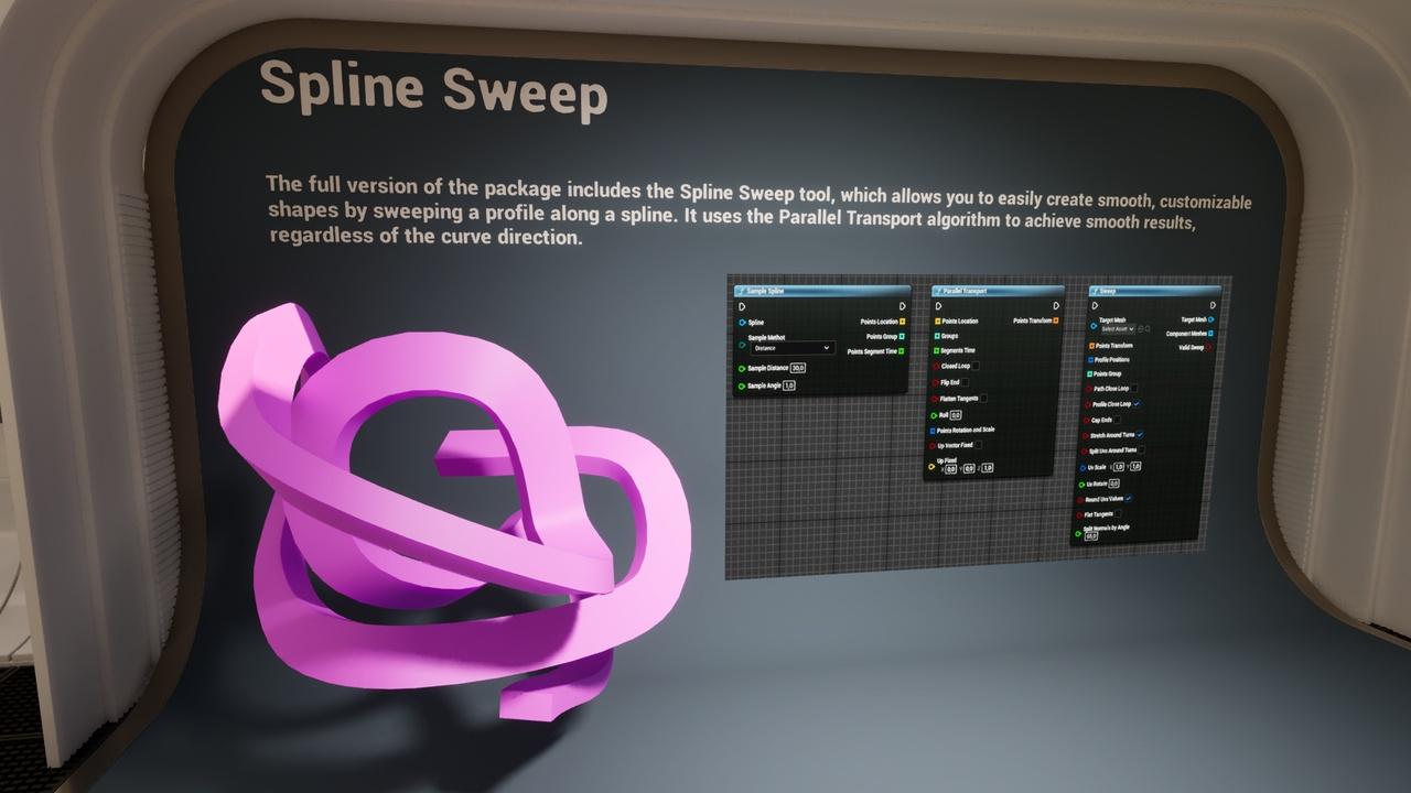 Includes Sweep Spline Tool – Advanced tool for generating procedural geometry using splines.